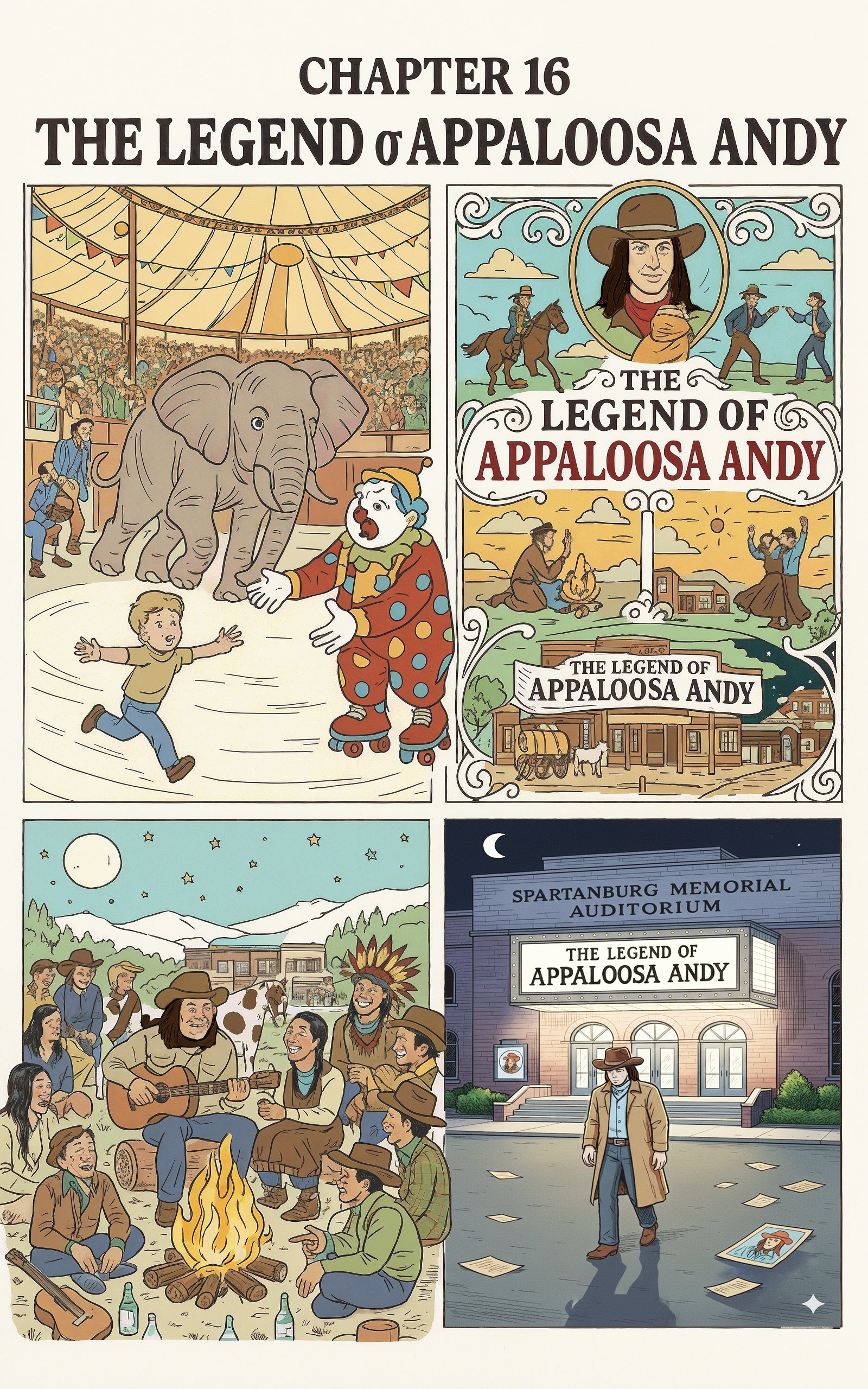 In the American West, legends are made of outlaws and lawmen. Into that world I came: a showman named Appaloosa Andy. The name was given by an old medicine man, Fire Owl. He said the Appaloosa wasnât the fastest horseâbut it was the one that endured. The one that went the distance.