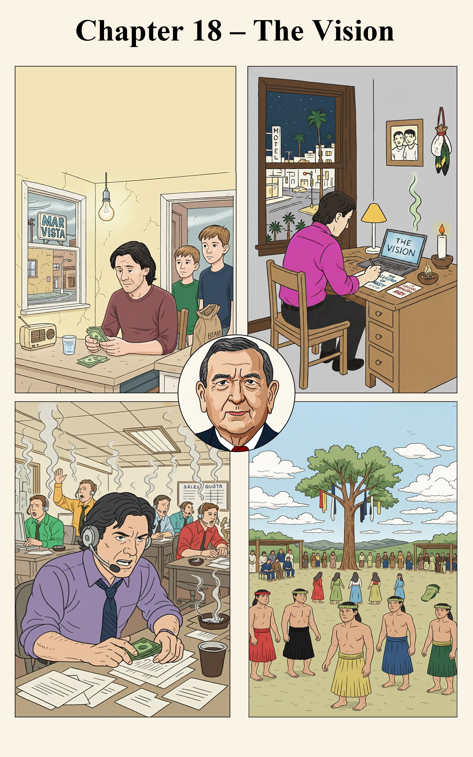 By 2016, I stepped away. Iâd had enough of doors that looked open but werenât. I returned to writing and filmmaking, supported by Quitoâby then thriving as a production designer for Apple, Nike, and the car companies in the world. Tony and Amanda encouraged me too. They knew I needed a different frontier. I had been a farmer, a clown, an activist, a wanderer, a father, a storytellerânow I needed to remember how to dream without waiting for permission.