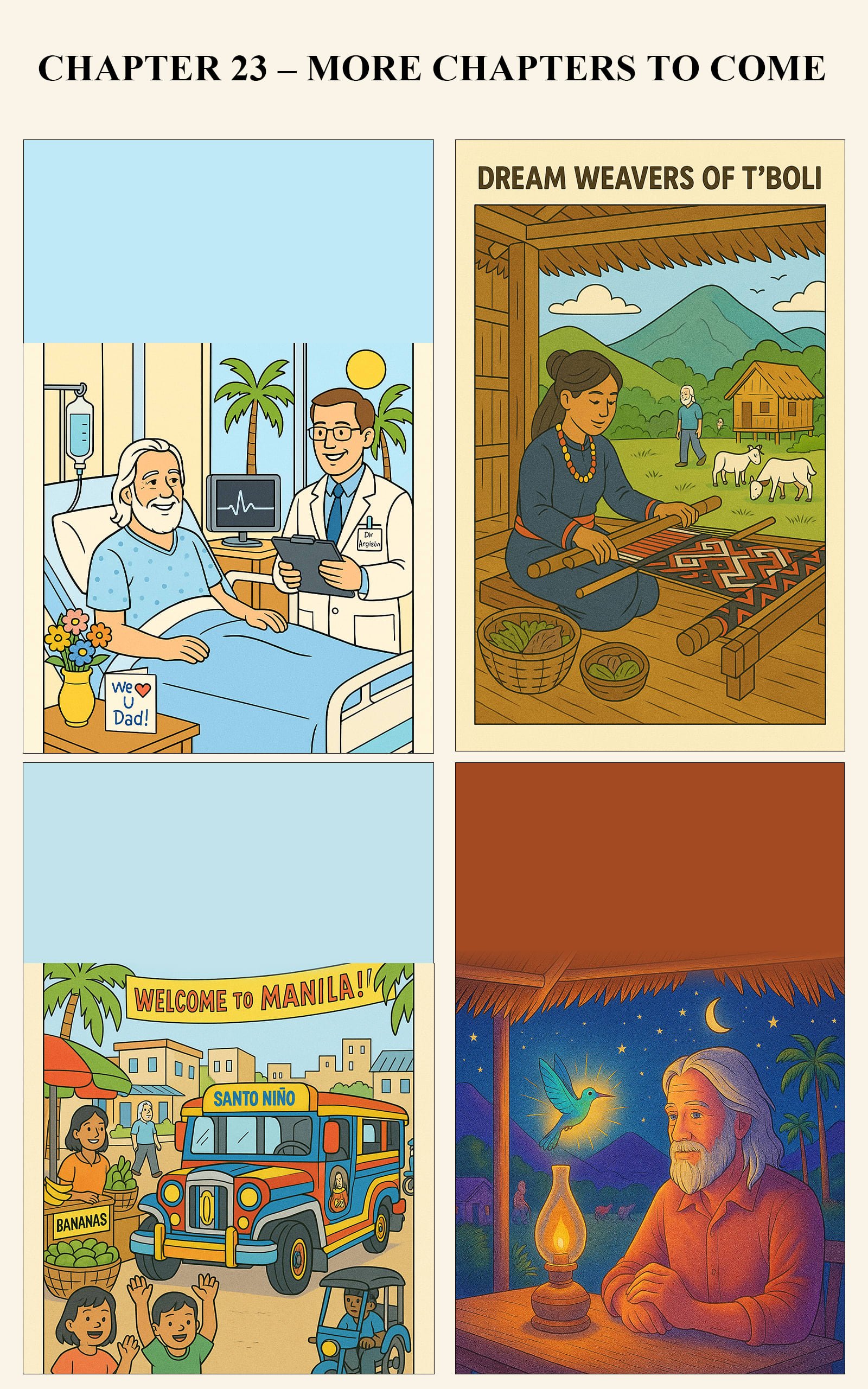 That night, under a thatched roof dimly lit by an oil lamp, a single hummingbirdâor maybe it was a dragonflyâhovered near the flickering flame. Its wings caught the firelight like shards of living glass. I took it as a sign that the circle had closed. That the spirit that had followed me from Colorado valleys to Ecuadorian mountains to Los Angeles nights had found me again in the Philippine highlands.