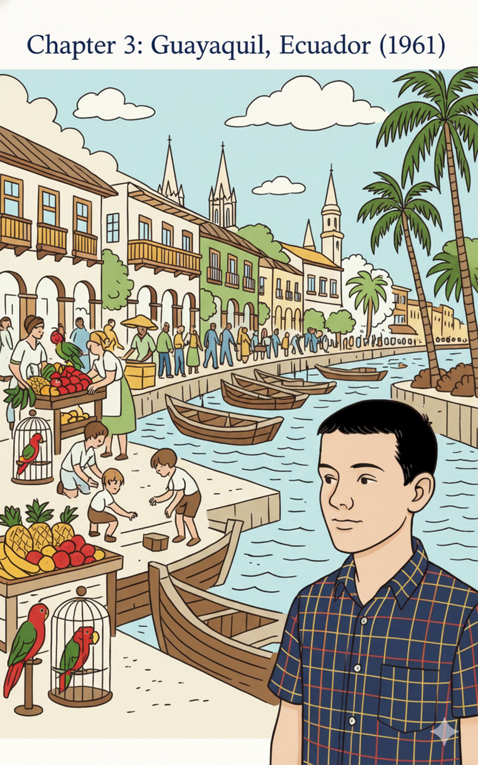 This chapter captures the summer I left the safety of home behind and sailed to Ecuador on a banana boat at fifteen, chasing freedom with my friend Ricky. In Guayaquil, I fell in love for the first time—with the city, with Muñequita, and with the feeling that the world was finally mine to lose.